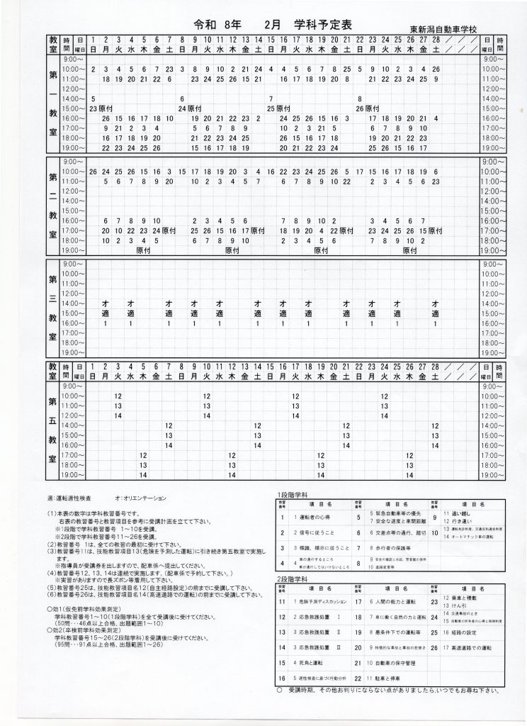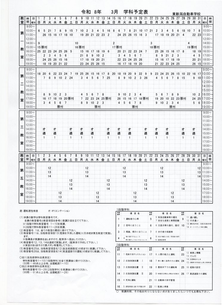 ※学科1時限は、50分です。 ※遅刻や講義中の退出は、再履行の必要がございます。